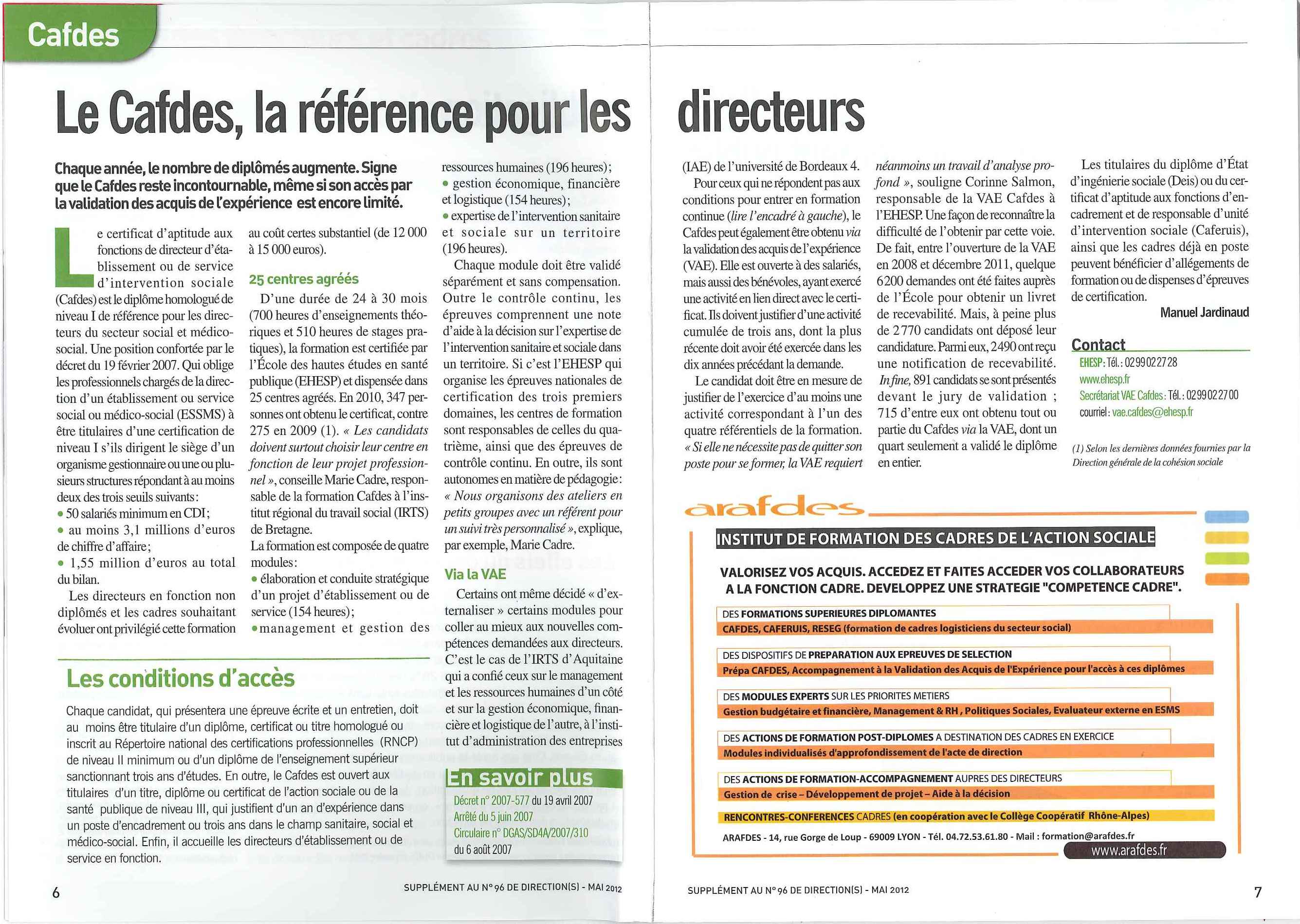 Article paru dans la publication trimestrielle d'UNIFAF - FORMATION SANTE SOCIAL n° 25 Septembre 2012 Article paru dans le Magazine DIRECTION’S N° 98 – Juillet-Août 2012 Article paru dans le Supplément au N° 96 du Magazine DIRECTION’S – Mai 2012 Article paru dans le Magazine ARSEG INFO/N° 221/Avril 2012 |