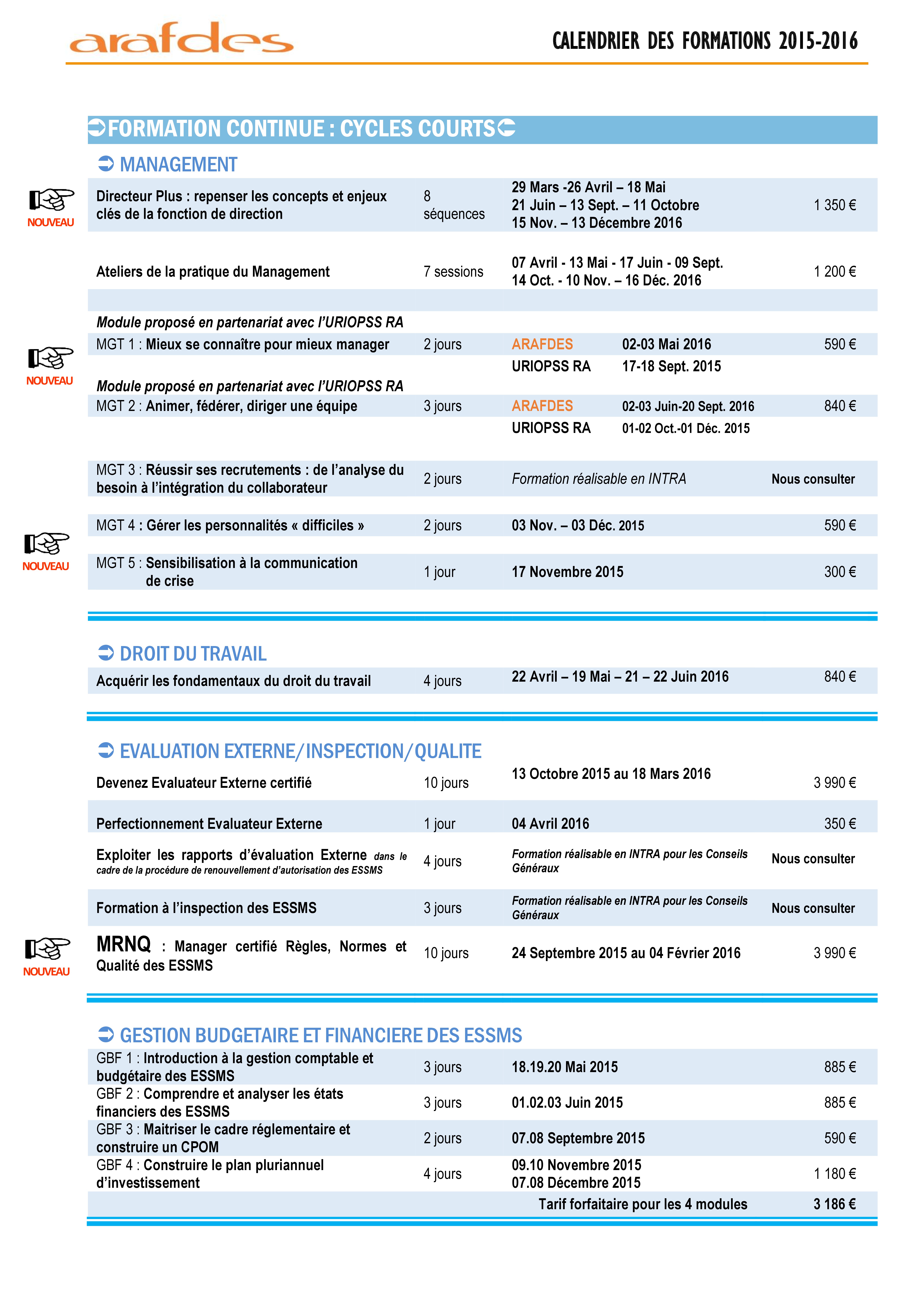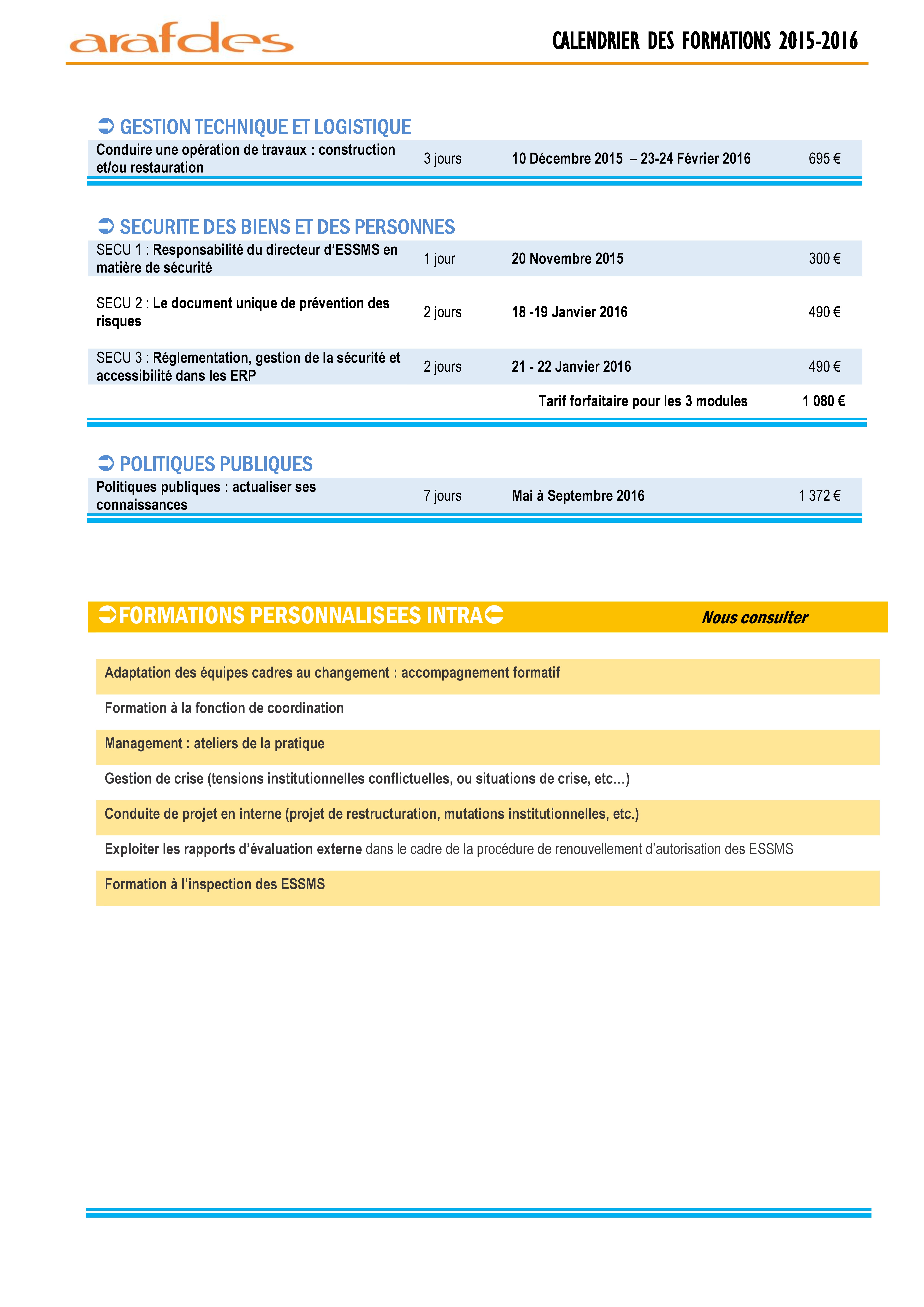 Calendrier des Formations 2015-2016